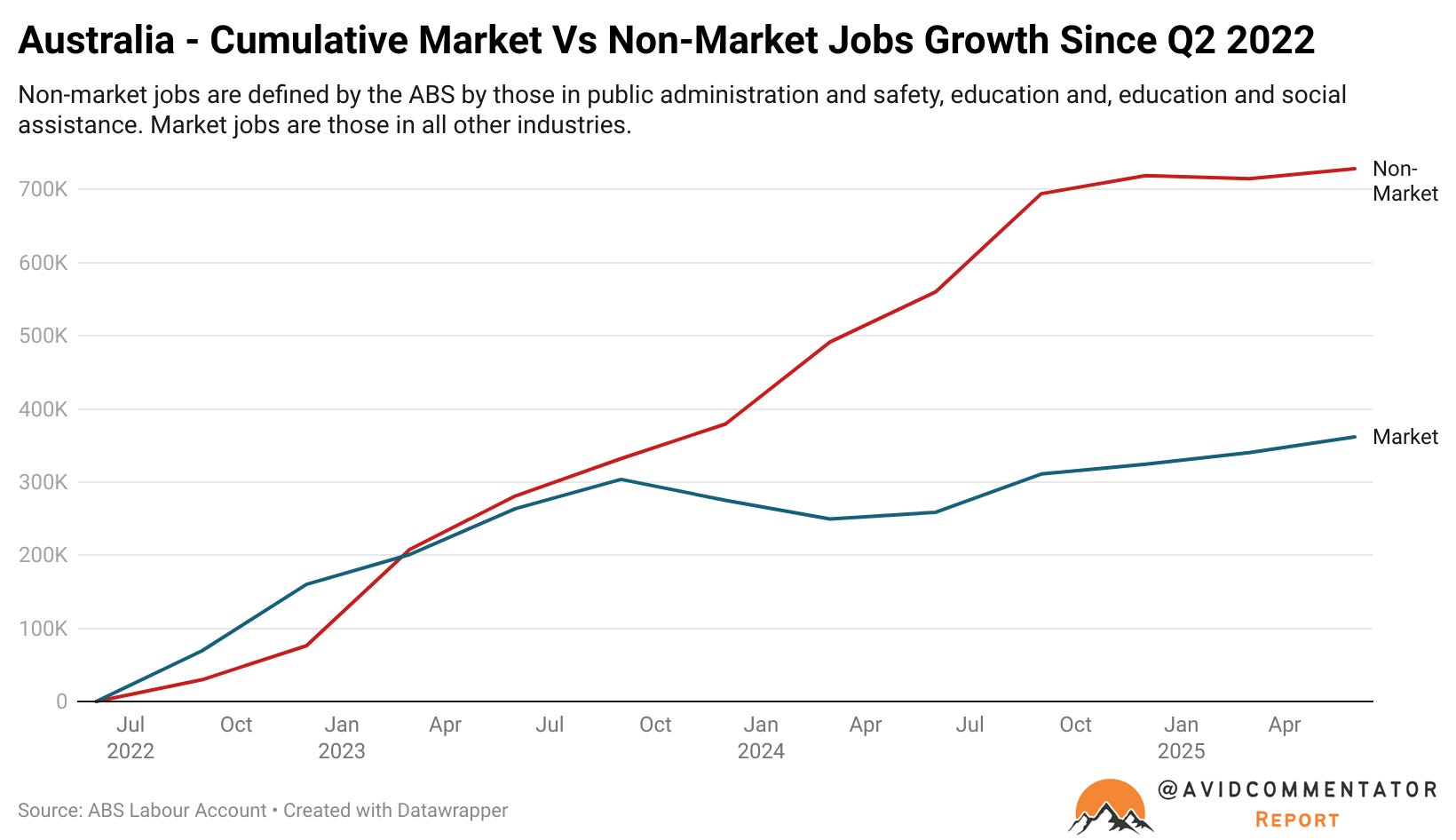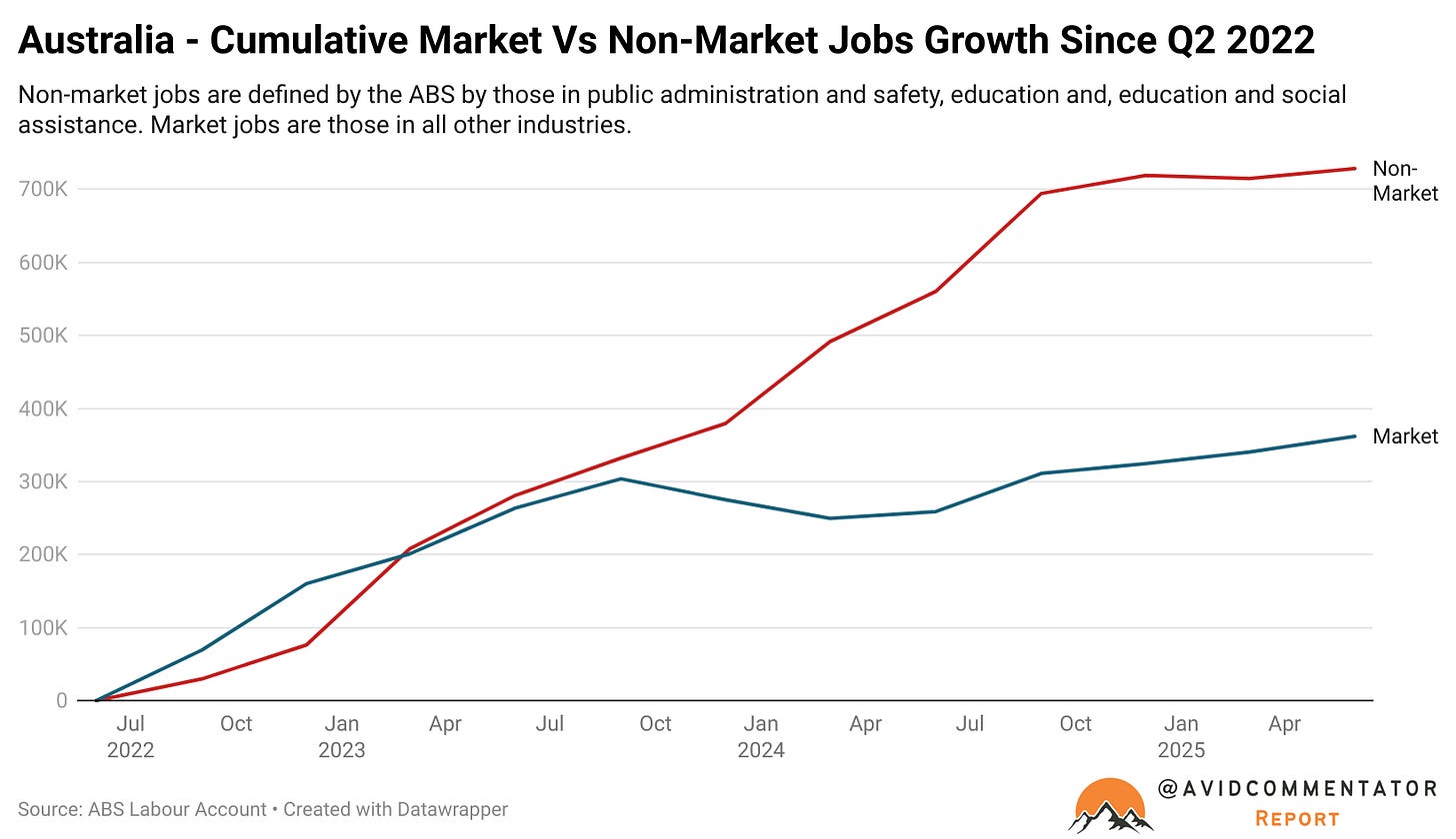 Meanwhile, since the Albanese government came to power, the overwhelming majority of employment growth has been from so called non-market jobs.