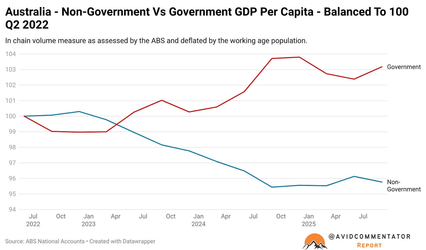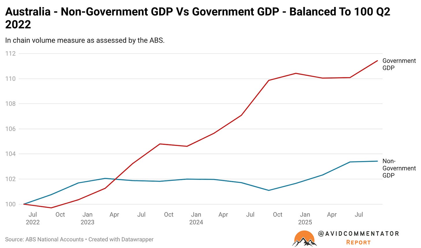 It illustrated quite nicely how non-government GDP growth had been anaemic since the start of the pandemic, while government GDP had grown dramatically.