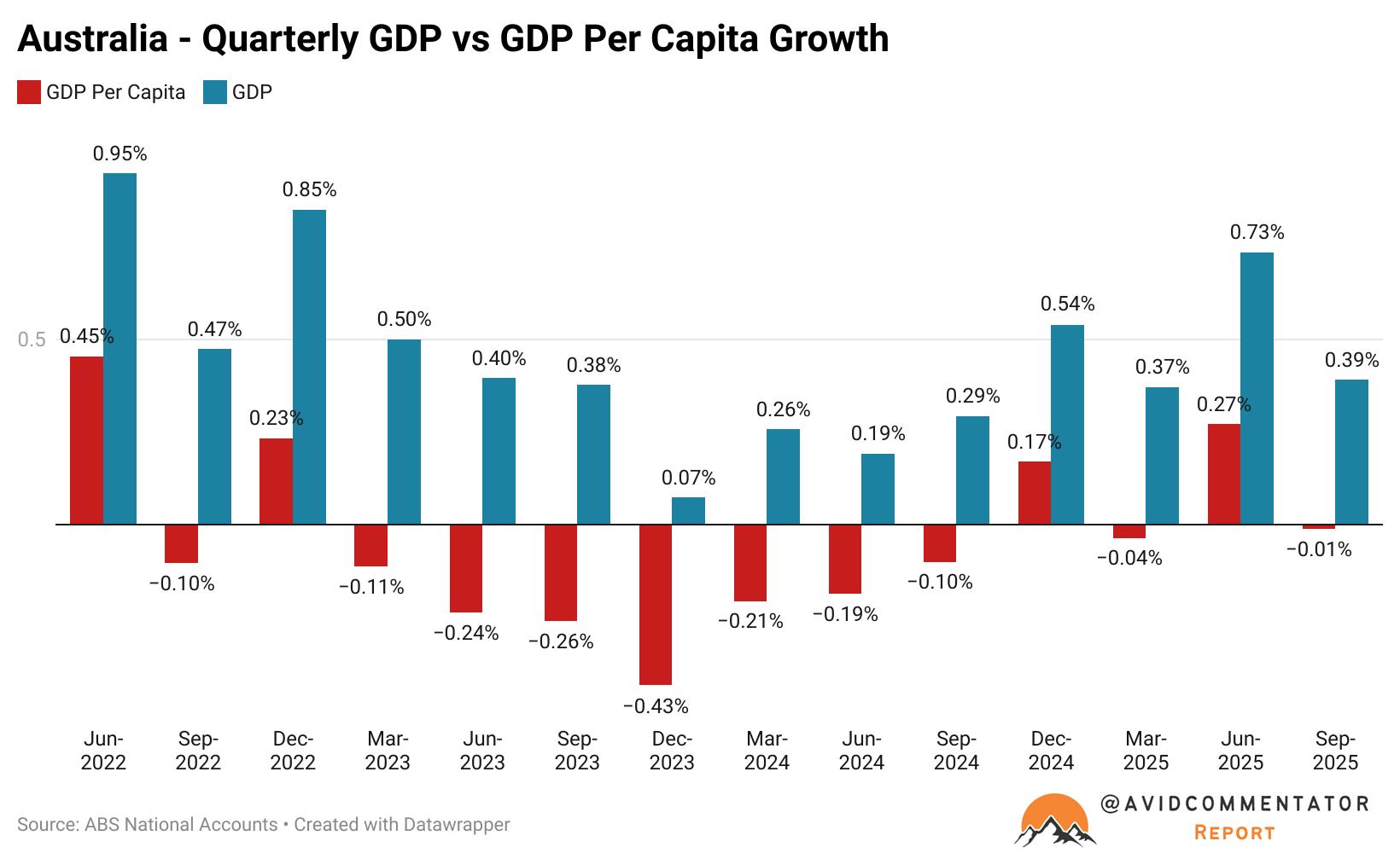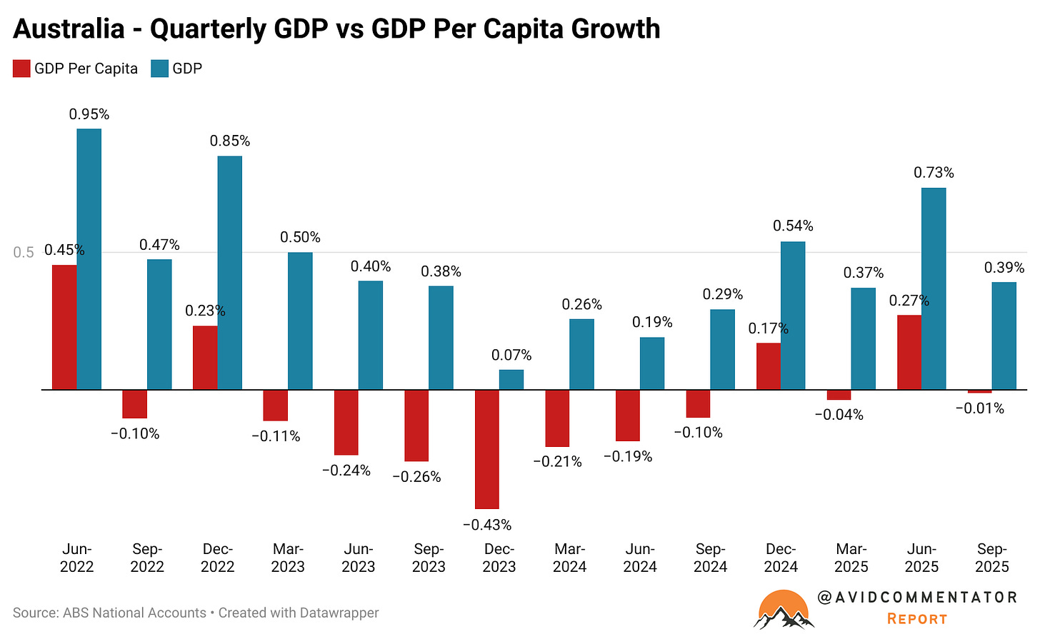 Since then 10 out of the last 13 quarters have recorded negative levels of growth in GDP per capita.
