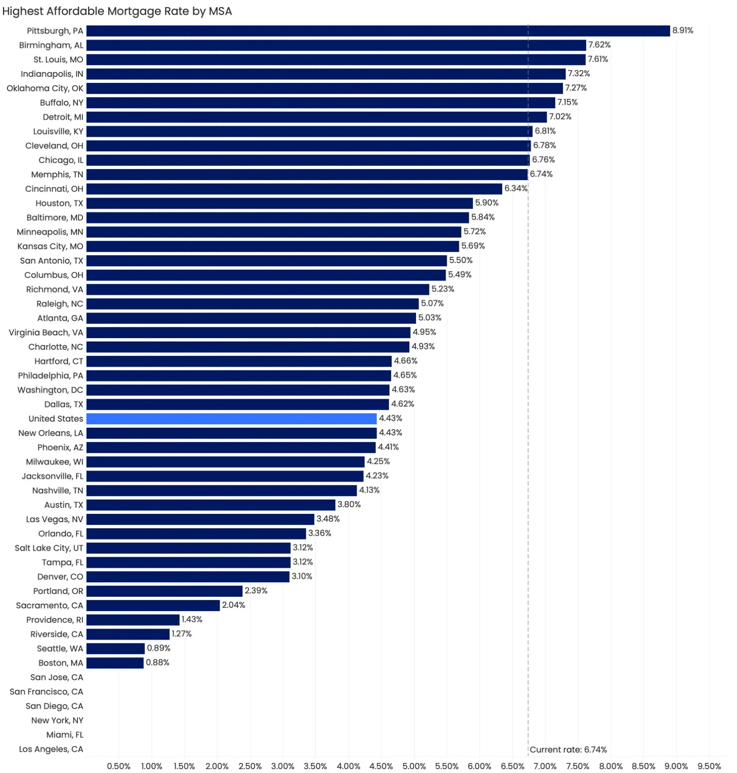But there were six cities, San Jose, San Francisco, San Diego, New York, Miami and Los Angeles that would not be affordable for a household on a median household income even if mortgage rates went to 0%.